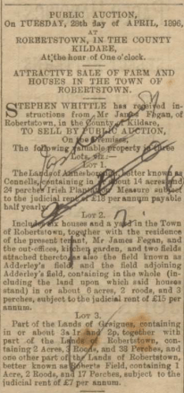 Sale of land in Robertstown better known as Connells, Adderley’s field and Robert’s field, Robertstown.